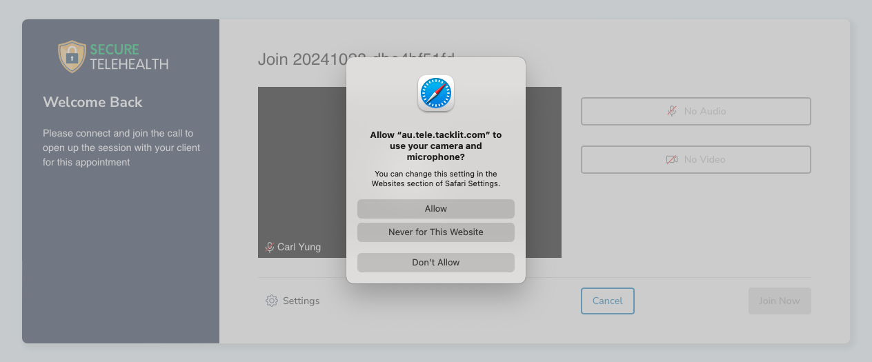 You can find further advice in our setup guide here: https://tacklit.helpscoutdocs.com/article/365-telehealth-set-up